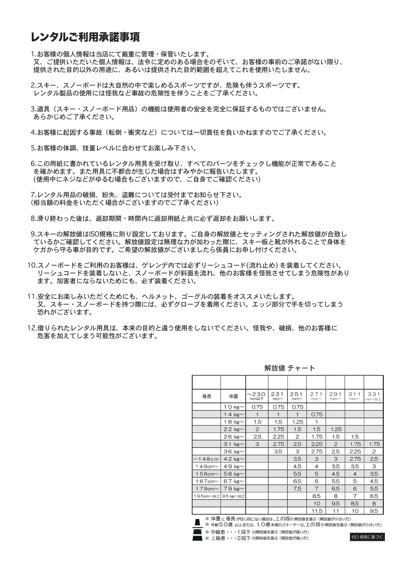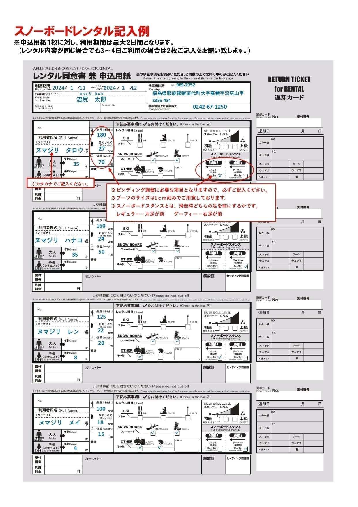 - 貸出後のスキー・スノーボードの交換について、団体様は適用されません