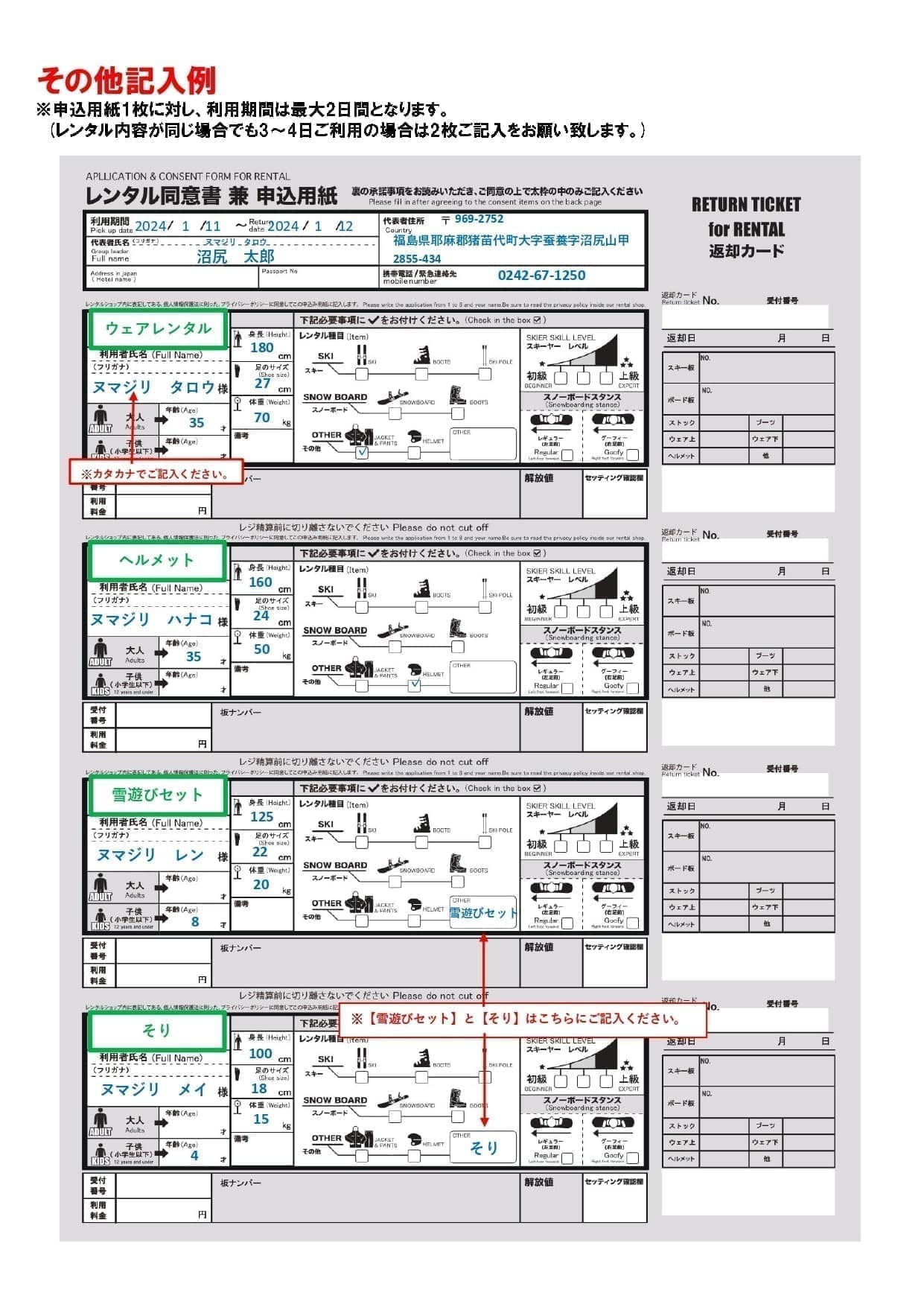 - ②当日レンタルショップ受付へ申込書提出&お会計
