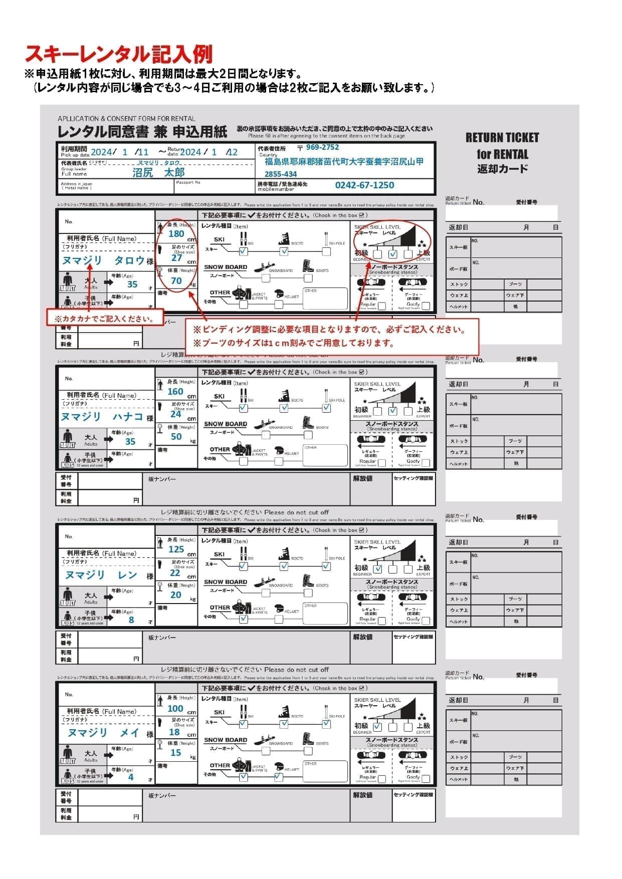 - ②当日レンタルショップ受付へ申込書提出&お会計